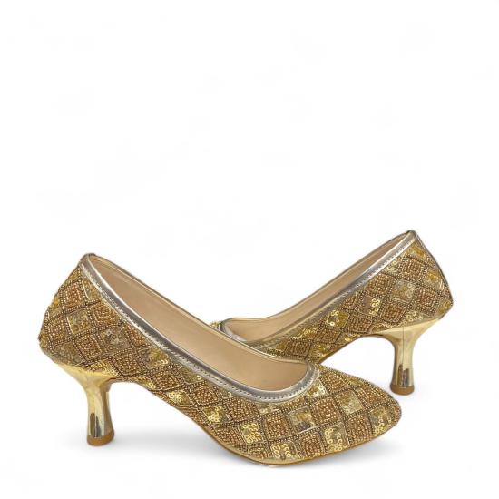 Hand Work Embroidery Pattern Artificial Premium Leather High Pencil Heels