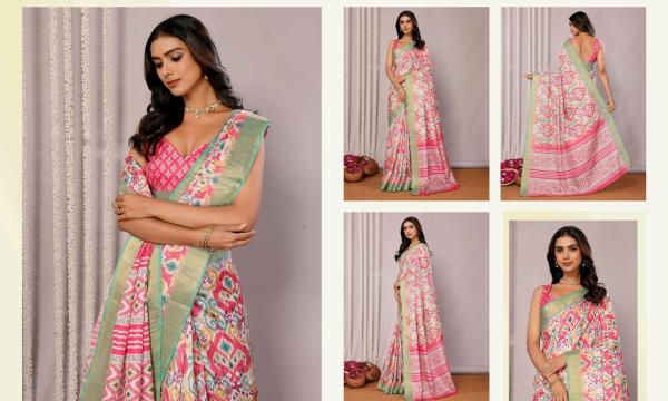 Silk Chandri Saree Designer Printed Border Backless Open Shoulder Blouse Design Embroidered
