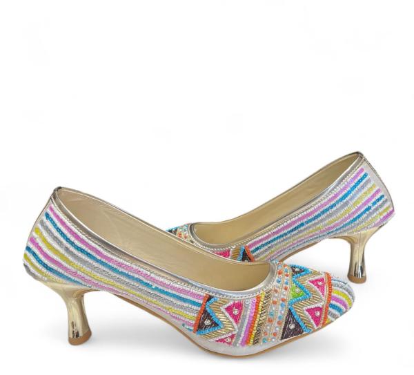 Handwork Embroidered Pattern Artificial Premium Leather High Heels