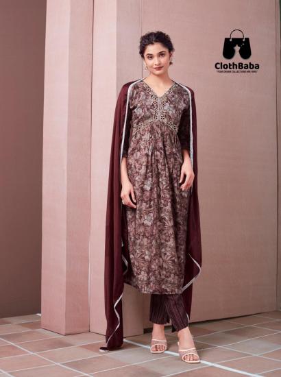 Aliya Cut Pattern Suit Hand Work Embroidered With Dupatta And Bottom
