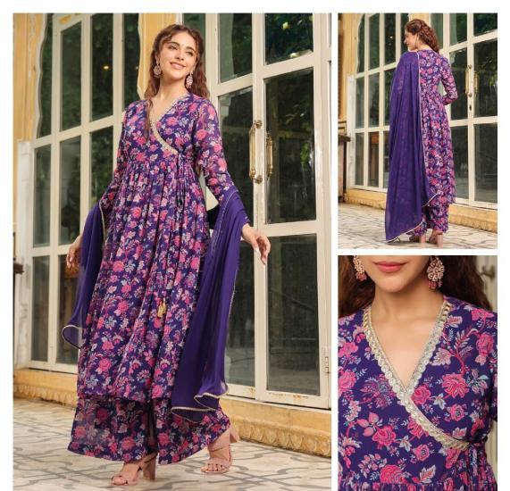 Angrakha Frock Plazo Set Party Wear Dress Stylish Look Fabric Georgette