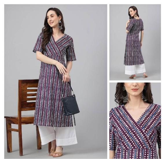 Angrakha Kurti Plazo Set Cotton Fabric Daily Wear Dress