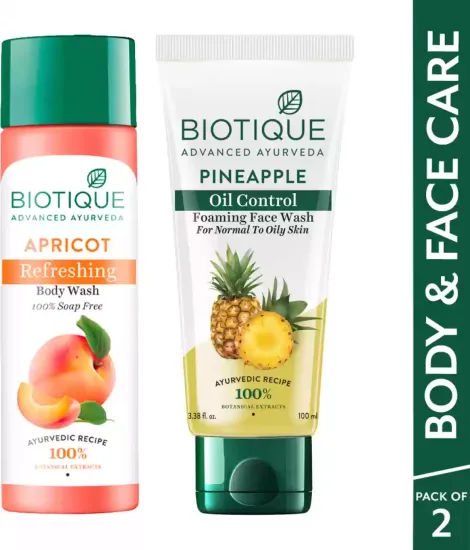 BIOTIQUE Face Body Combo-Pineapple Oil Control Foaming Apricot Body Wash Face Wash (200 G)