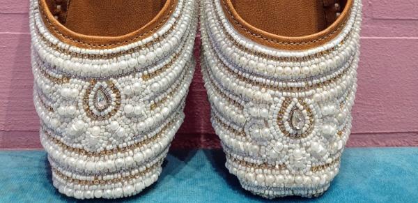 Back Open Slippers Jutti Punjabi Embroidery Pattern White Embroidery