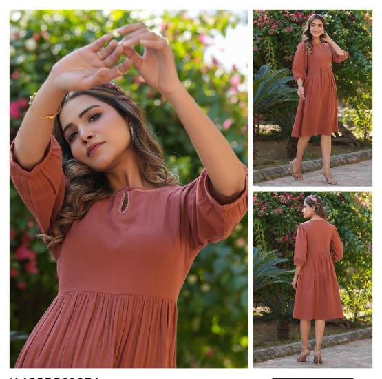 Knee Length Western Frock Dress Half Sleeves Collord Design