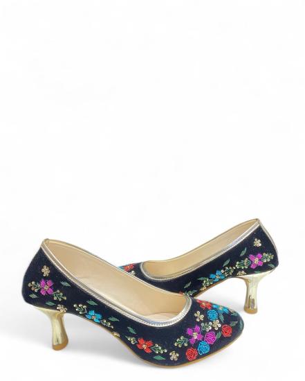 Black Embroidered Designer Hand Work High Heels Mules For Women