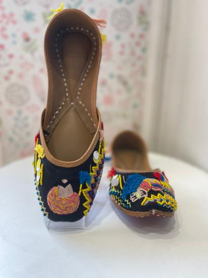"Black Punjabi Jutti For Women, Size 36, Adorned With Intricate Handwork Embroidery, Perfect For Adding Sophistication To Your Ensemble."