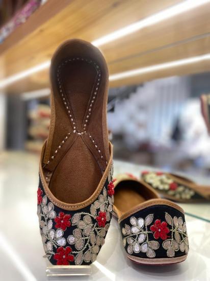 Embrace Heritage And Style With These Stunning Punjabi Juttis. Handcrafted From Fine Leather, Each Pair Is A Testament To Meticulous Artistry, Boasting Intricate Hand Embroidery And Adorned With Dazzling Jarkan Stones. Elevate Any Outfit With These Timeless Pieces That Seamlessly Blend Tradition With Contemporary Flair, Promising Sophistication And Charm With Every Wear.