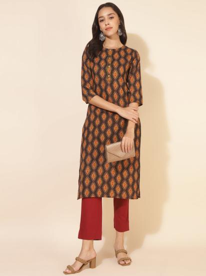 Brown Cotton Printed Straight Kurta