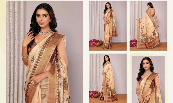 Chanderi Silk Digital Printed Saree Whit Blouse Open Shoulder Embroidered Saree