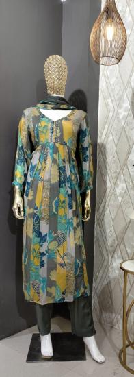 Chinon Aliya Cut Hand Work Sequin Embroidery Floral Print Dress