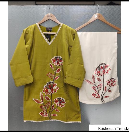 Floral Hand Work Embroidered Desig Fully Stitched With Border Pant Plazo