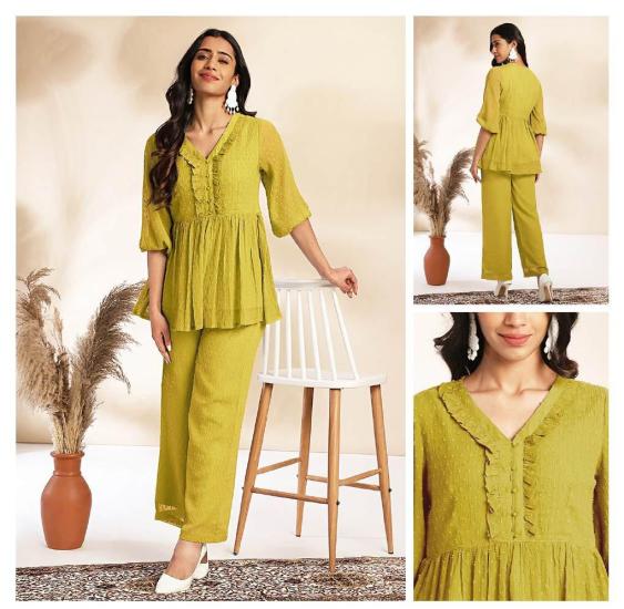Chiffon Fabric Fully Stitched Coords Set Beutiful Neckline Pattern