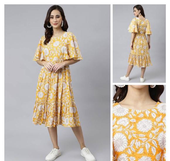 Designer Middy Frock Dress Digital Printed Dress Stylish Umbrella Sleeves Round Neck Embroidered