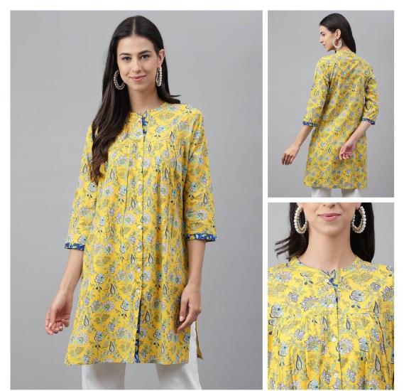 Stylish Tunic Digital Printed Party Wear Cotton Fabric Embroidered