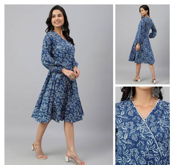 Designer Frock Dress For Women Stylish Round Neck Digital Printed Design Cotton Fabric Knee Length Pretty Dress