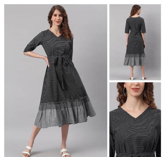 Designer Frock Dress For Women Lining Design V Neck Embroidered Knee Length Fabric Cotton