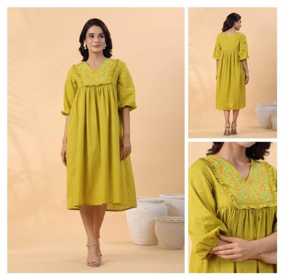 Tunic Frock Sequin Thread Designer Dress V Neck Cotten Fabric Embroidered