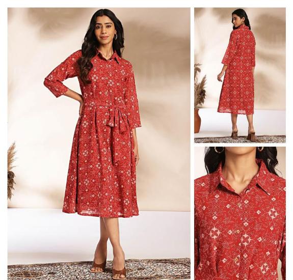 Tunic Frock Dress Printed Designer Collar Neck Cotten Fabric Knee Length Embroidered