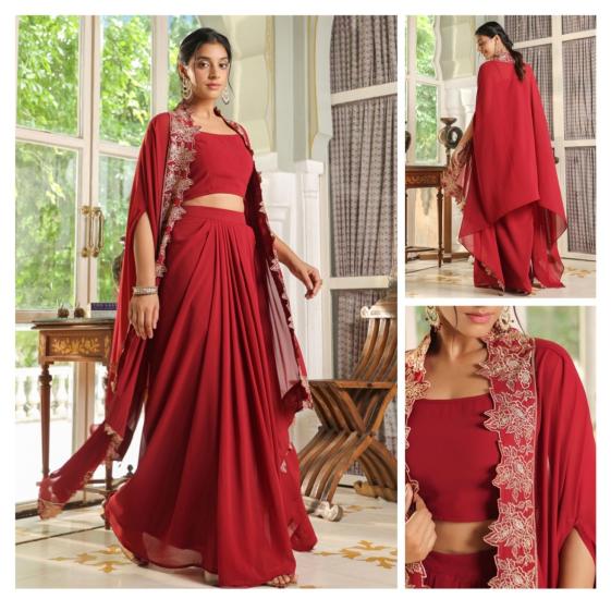 Georgette Fabric Embroidered Crop Top Skirt With Shrug Fully Stitched