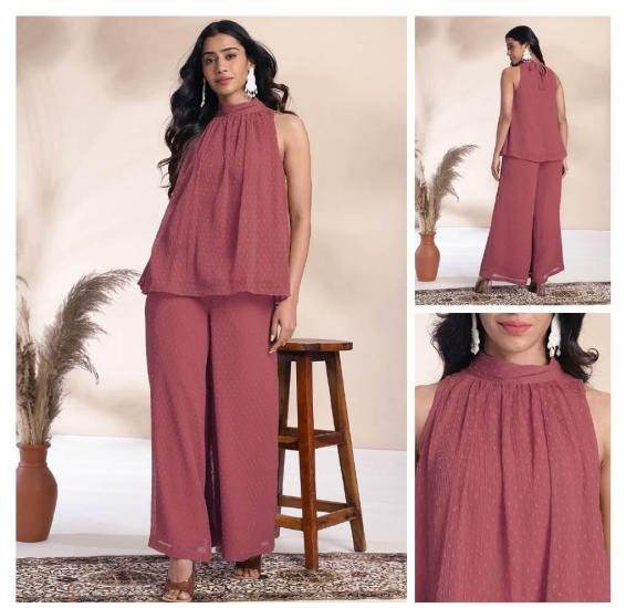 Heavy Chiffon Fabric Fully Stitched Sleeveless Self Design
