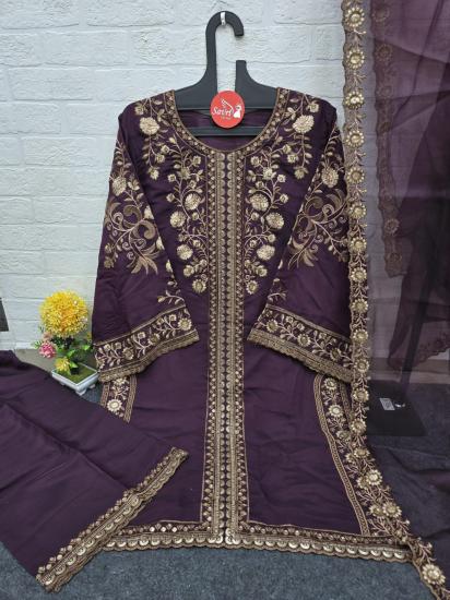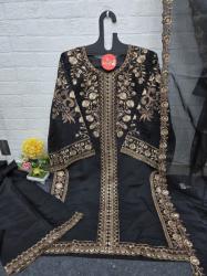 Embroidery Hand And Sequin Work Sherwani Pattern Fully Stitched With Dupatta And Plazo