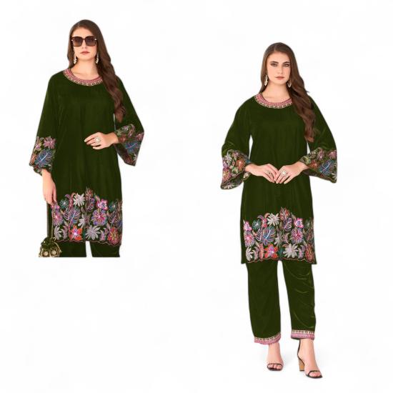 Designer Coords Set 11000 Velvet With Thread Work Fancy Embroidery Work And 11000 Velvet Bottom Beautifull Set