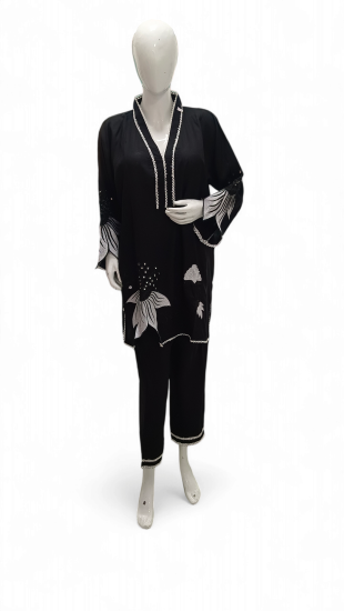 Embroidered On Border And Sleeves V Pattern Neck Design Fully Stitched