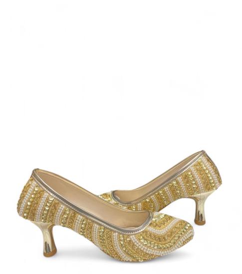Hand Work Embroidery Pattern Artificial Premium Leather High Pencil Heels
