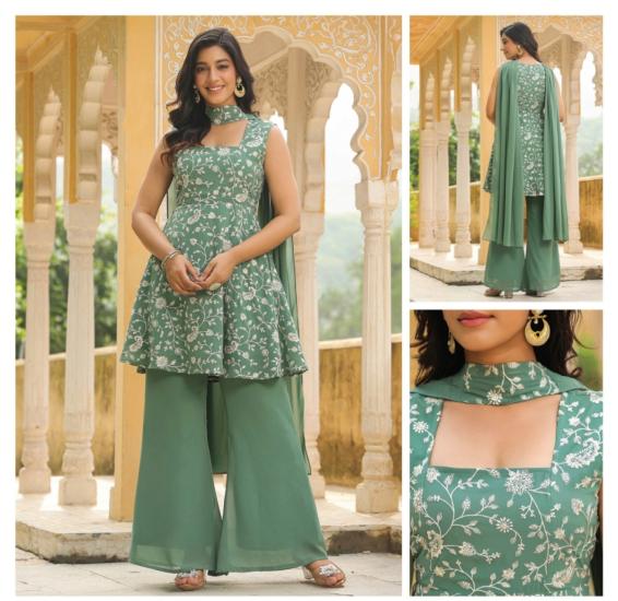 Pure Georgette Fabric Thread Embroidered Pattern With Dupatta