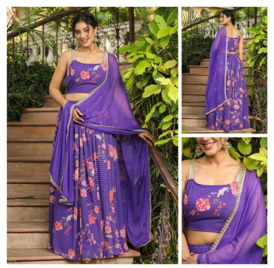 Pure Georgette Fabric Printed Embroidery Fully Stitched With Dupatta Lehenga Full Flairs