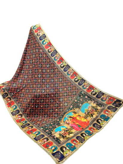 Designer Jaipuri Printed Chinon Dupatta Mirror Embroidery