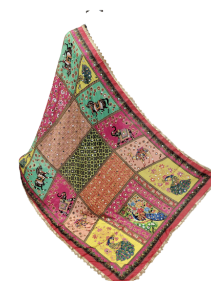 Designer Jaipuri Printed Chinon Dupatta Mirror Embroidery