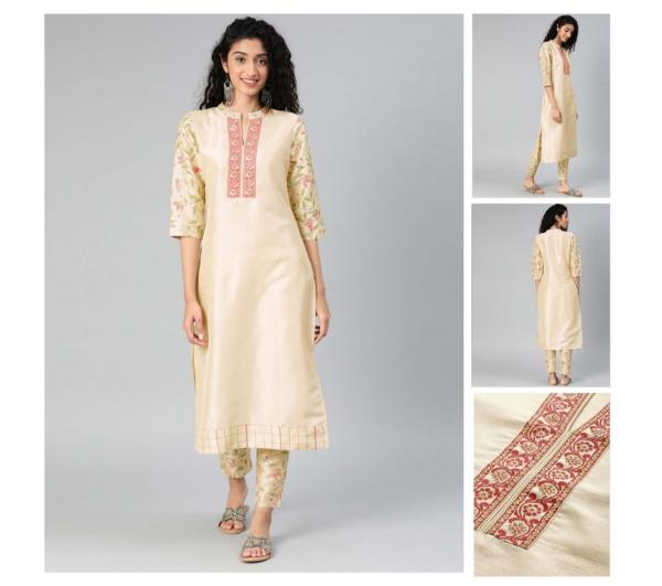Poly Silk Fabric Kurti Set Fully Stitched Printed Bottom