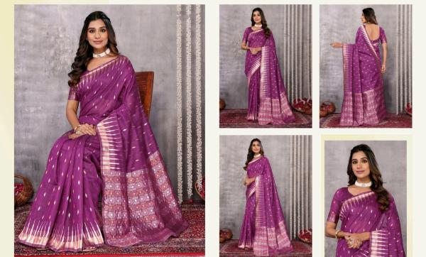 Linen Cotton Saree For Women Half Sleeve Backless Design Round Neck Party Wear Saree Embroidered