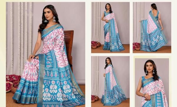 Chanderi Silk Digital Printed Saree Whit Blouse Open Shoulder Backless Design Embroidered