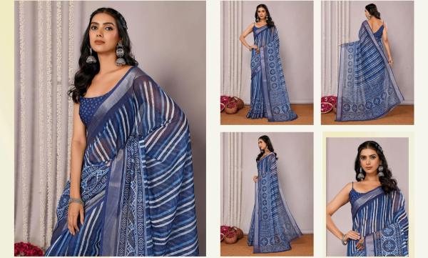 Stylish Linen Cotton Saree Printed Backless Open Shoulder Blouse Design Embroidered Saree