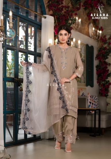 Designer Heavy Georgette Embroidered Tunic With Sleeves Paired With Designer Cigarette Pant And Organza Designer Dupatta
