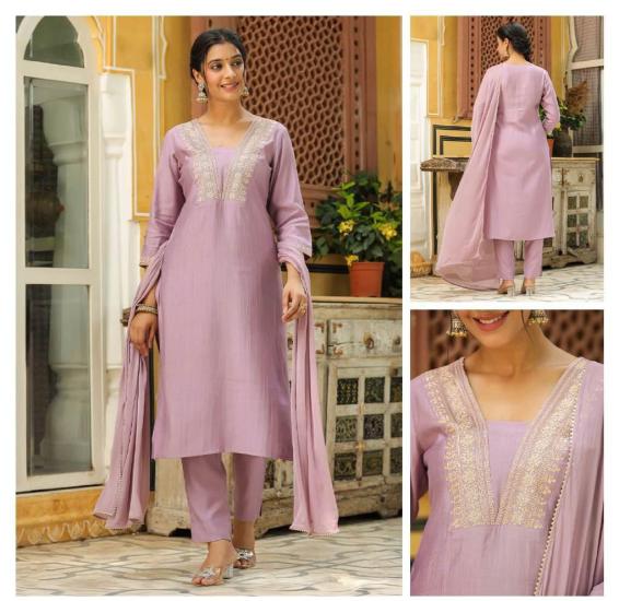 Designing Kurti Pant Party Wear Suit Fabric Silk Blend Embroidered