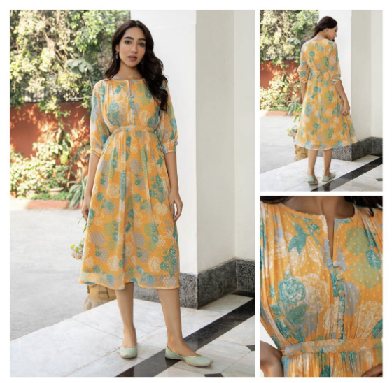 Pure Cotton Middy Dress Fully Stitched Three Quarters Sleeves