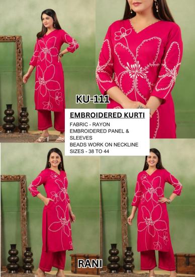 Embroidered Kurti Fabric Raylon Embroidered Panel And Sleeves Beads Work On Neckline