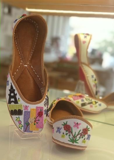 Immerse Yourself In Pure Sophistication With These White Punjabi Juttis. Embellished With Intricate Jarkan Handwork, These Juttis Are Tailored For Women With A Size 36 Foot. Their Pristine Color And Traditional Detailing Exude Timeless Elegance, Making Them The Perfect Choice To Elevate Your Ensemble For Any Occasion, Whether It Is A Formal Event Or A Casual Outing, Ensuring You Radiate Effortless Style With Every Step.