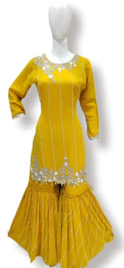 "Dress To Impress At Your Haldi Or Party Function With Our Stunning Yellow-colored Embroidered Dress. Crafted From Pure Viscose Fabric And Adorned With Intricate Jarkan Handwork Embroidery, This Ensemble Radiates Elegance And Charm, Ensuring You Stand Out On Any Occasion."
