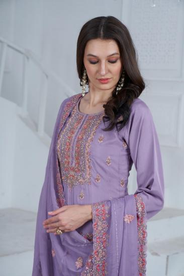 Embroidery Suit Heavy Fabric Lavender Colour