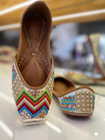 "Experience Unparalleled Quality And Unmatched Beauty With Our Exquisite Punjabi Juttis For Women. Crafted With The Finest Materials And Adorned With Vibrant Multicolored Embroidery, Each Pair Radiates Elegance And Sophistication, Promising Both Comfort And Style For Every Occasion."