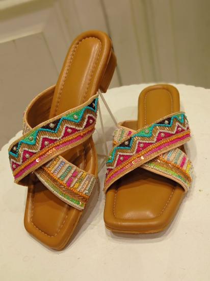 Embroidered Designer Criss Cross Sandal Small Heels