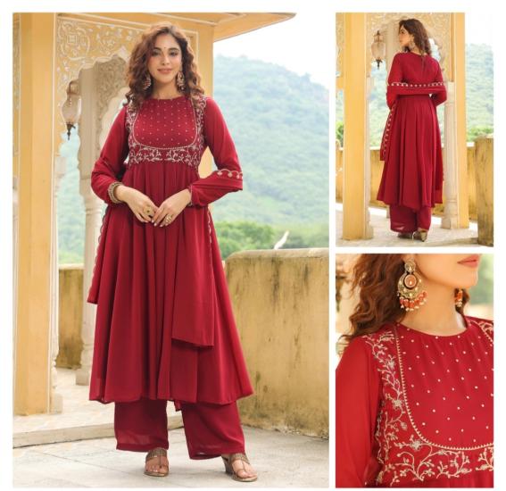 Georgette Kurti Set With Dupatta For Women
