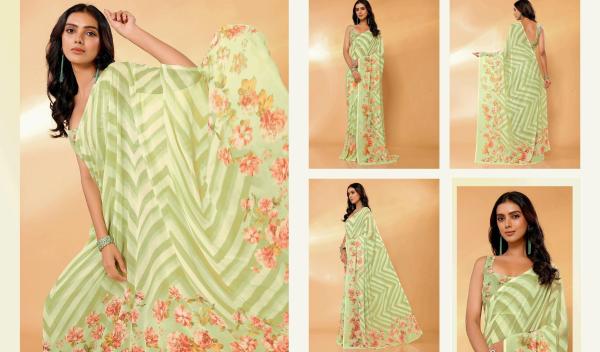 Georgette Saree Floral Zig Zag Printed