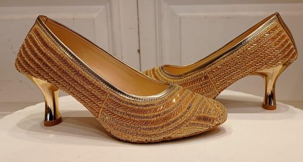 Step Into Opulent Elegance With Our Gold Embroidered Mules, Meticulously Crafted To Elevate Your Ensemble. Luxurious And Intricately Detailed, These Shoes Exude Glamour For Any Special Occasion Or Evening Affair.