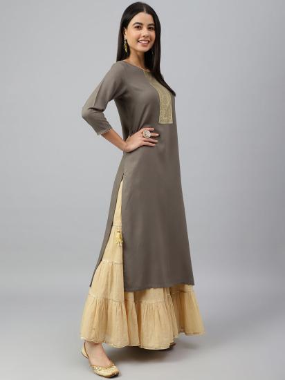 Grey Rayon Solid Straight Kurta
